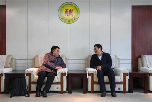 12月12日,马来西亚登嘉楼大学YEONG YIK SUNG教授应邀做客我校“天农名家讲堂”。报告会前,校党委常委、副校长张民热情接见了YEONG YIK SUNG教授。