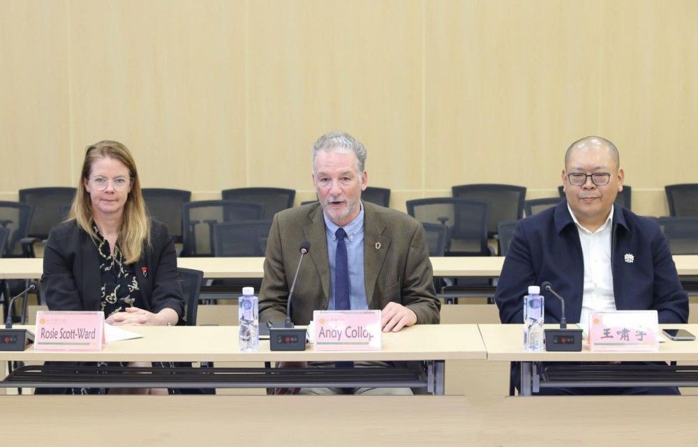 Andy Collop感谢我校的热情接待,并强调两校在农业、动物科学、农林管理等学科领域存在高度契合点,期待通过共建中外合作办学机构这一载体,共同探索农业教育国际化的创新模式。王啸宇在随后发言中深情回顾了两校跨越二十载的深厚渊源。他提到,20年前曾随团访问我校,为两校交流播下友谊的种子,今日双方再度会面,将是跨越时空的教育佳话与农业国际化需求的完美结合。