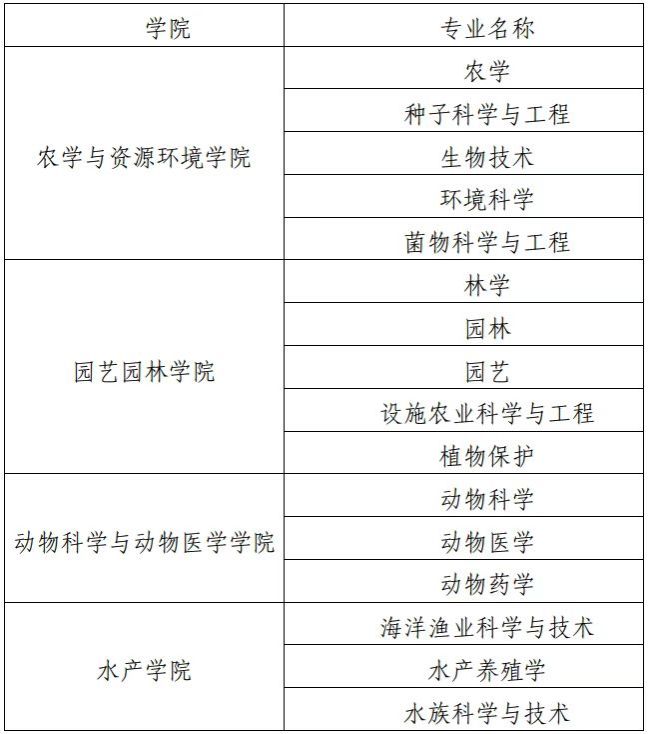 天津农学院2026年招收港澳台学生本科招生专业一览表